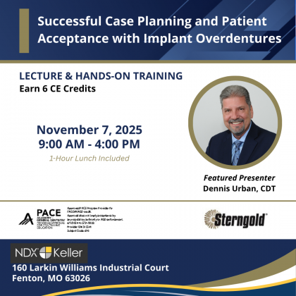 Dennis Urban, CDT has over 45 years of expertise in the dental field including lab management, technical training, product development, quality assurance, teaching, writing, and lecturing. In addition to being a seasoned dental lab technician and former laboratory owner, Dennis has been an eminent lecturer and trainer to dentists and technicians worldwide since 1985. His technical articles have been published in numerous dental publications in the US, Canada, and Europe. Dennis was the recipient of the prestigious 2024 CDT of the Year Award and the 2007 NADL Excellence in Education Award. Dennis is the Director of Education and Training at Sterngold.